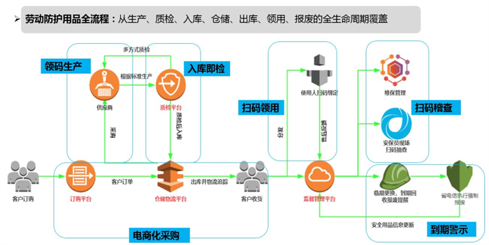 二是對個人勞動保護用品實施全生命周期監管。公司建設了全生命周期監管平臺,利用物聯網、大數據等新技術,對個人勞動保護用品實現全生命周期管理。實現了對個人勞動保護用品從生產、質檢、倉儲物流、質量抽檢、維保和回收報廢全生命周期的信息化監管。