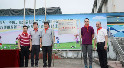 2019年中國職工足球委員會主席遲尚斌(已故)為中國職工子女足球親子課堂(上汽通用五菱二十七中站)授牌