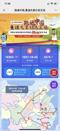 其中線上健步走項目由中國企業(yè)體協(xié)負責具體牽頭落地做實,是全國職工健康促進工程“健康運動”板塊工作的重要組成部分。中國企業(yè)體協(xié)圍繞建黨100周年,將本賽事與黨建文宣工作緊密結合。